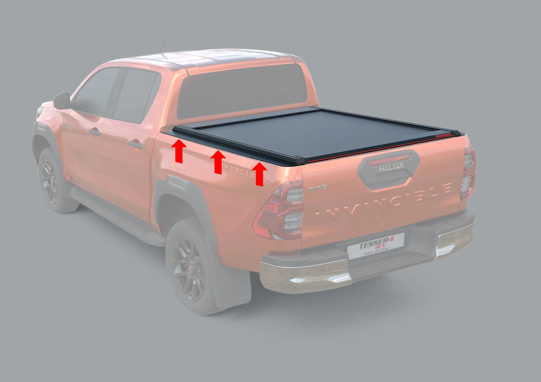 Parti laterali di scorrimento appositamente realizzate (spessore: 5 mm), che seguono la forma e il design delle parti di scorrimento del bagagliaio al 100% (in lunghezza e in ampiezza). Di conseguenza, ciò offre un migliore isolamento dagli agenti atmosferici e una procedura d'installazione resistente e durevole per tutti i tipi di rollbar, corrimano laterali e barre di carico per gli utilizzi intensivi. Offre anche la flessibilità di combinarsi ad accessori originali (OEM), come le rollbar.
