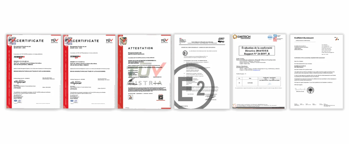 - La KBA conferma Tessera4x4 come produttore automobilistico certificate. Tessera4x4 ha completato con successo la Valutazione Iniziale ufficiale da parte dell’Autorità Federale Tedesca per il Trasporto Motorizzato (Kraftfahrt-Bundesamt – KBA). Questo riconoscimento conferma che i nostri processi di produzione, i controlli qualità e i sistemi di conformità soddisfano i più elevati standard europei del settore automobilistico. In qualità di produttore automobilistico certificato, Tessera4x4 è ora pienamente idonea a ottenere le Omologazioni di Tipo KBA per i propri prodotti, rafforzando la nostra posizione nel mercato dell’UE e ribadendo il nostro impegno per affidabilità, sicurezza e prestazioni a livello OEM.